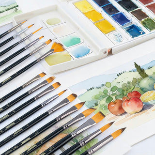 Transon 10pcs Natural Watercolor Paint Brush Set