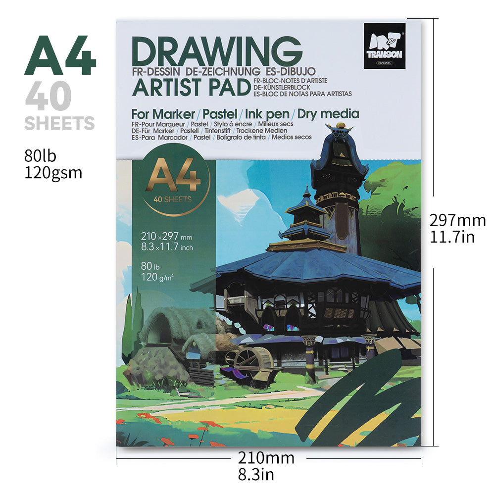 • 40 sheets of medium weight(80lb/120gsm) sketchbook and marker pad, popular international A4 size 8.3”x11.7”.